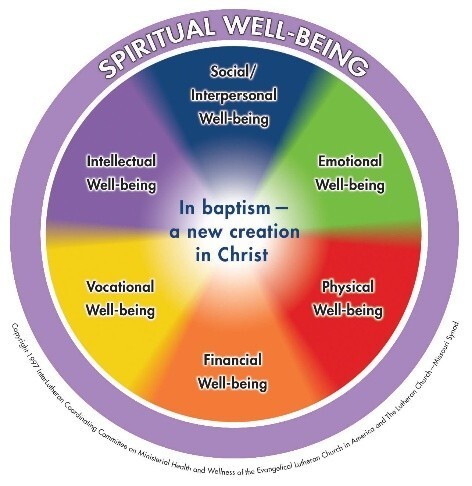 When I participated in the Faith Community Nurse (FCN) course, we were taught that our role not only addressed physical and mental well-being, but also intentional care of the spirit. The ELCA has a wholeness wheel which emphasizes that wellness is multi-dimensional. This makes sense to me as often as one area is compromised, another one suffers as well.
