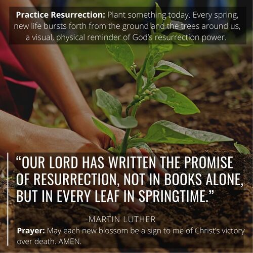 Plant something today. Every spring, new life bursts forth from the ground and the trees around us, a visual, physical reminder of God's resurrection power.