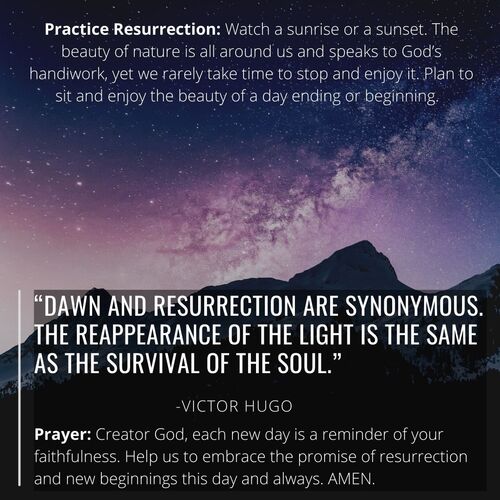 Throughout the Easter season, the 365 devotionals will invite you to Practice Resurrection. Each email will contain a Resurrection Practice, a prayer, and a quote, all working together to highlight the simple and profound ways that the promises of Christ’s Resurrection break into our life each and every day.