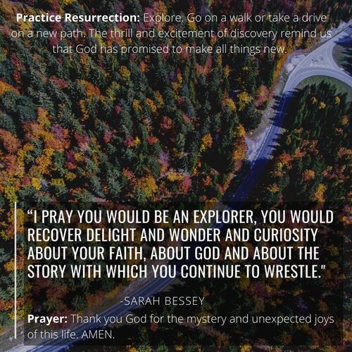 Explore. Go on a walk or take a drive on a new path. The thrill and excitement of discovery reminds us that God has promised to make all things new.